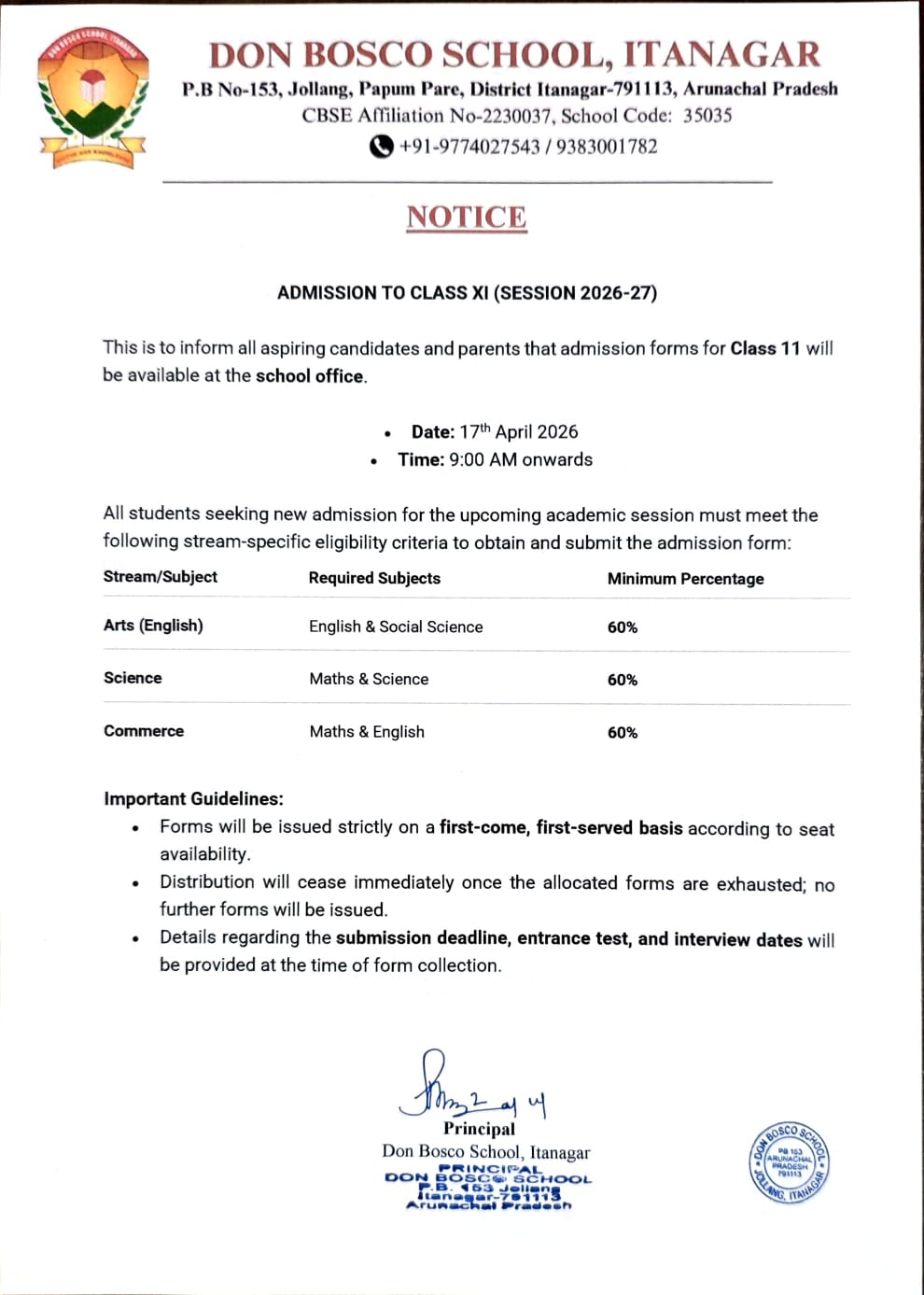 Don Bosco School Itanagar is a Catholic educational institution committed to forming young people through a unique blend of academic rigor, moral values, and joyful learning inspired by the charism of St. John Bosco.